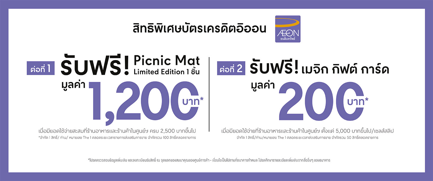 • บัตรเครดิตอิออนรับ Magic Gift Card 200 บาท เมื่อมียอดใช้จ่ายต่อเซลส์สลิป 5,000 บาท จำกัด 1 สิทธิ์/หมายเลขเดอะวัน/ตลอดรายการ จำกัดรวม 50 สิทธิ์/ตลอดรายการ ระหว่างวันที่ 30 มี.ค. 67 – 19 พ.ค. 67